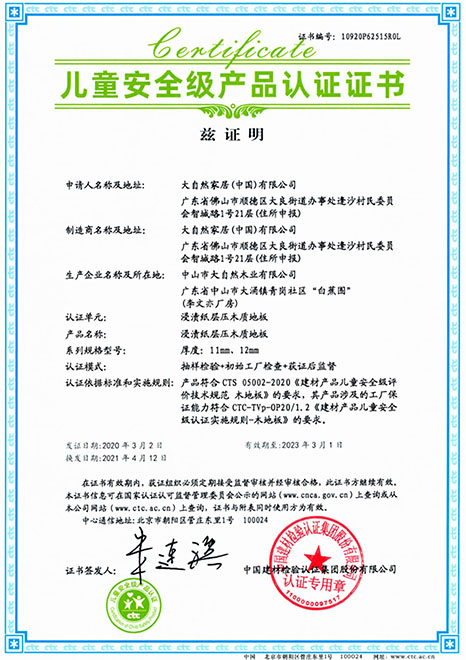 在準(zhǔn)確把握“環(huán)保、健康”的消費(fèi)需求之后,大自然家居研究院通過(guò)技術(shù)攻關(guān),開(kāi)發(fā)出零醛智造技術(shù)。這也成為大自然強(qiáng)化地板的“健康密碼”,它采用高防潮高密度MDI環(huán)保基材,生產(chǎn)過(guò)程零醛添加,甲醛釋放限量采用新國(guó)標(biāo)最嚴(yán)苛的ENF級(jí),產(chǎn)品獲得“兒童安全級(jí)認(rèn)證”。