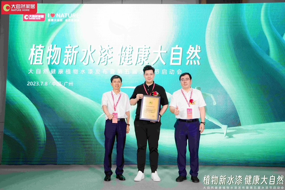 現(xiàn)場,大自然家居的科學(xué)技術(shù)成果獲得相關(guān)單位授牌,同時水漆狂歡節(jié)正式啟動,當(dāng)健康植物水漆緩緩注入象征健康家居“六零健康新標(biāo)準(zhǔn)”啟動臺上,家居行業(yè)的植物水漆新時代也就此開啟。