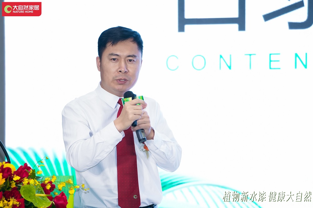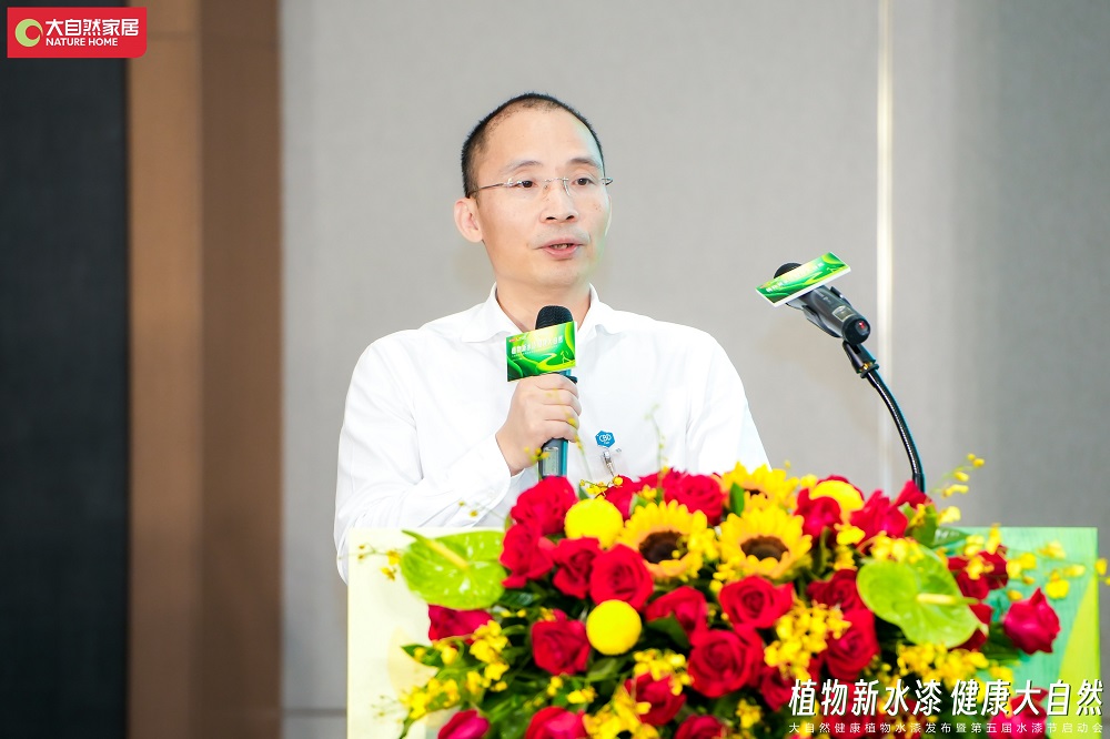 發(fā)布會現(xiàn)場,中國建博會負責(zé)人楊華偉在致辭中表示,大自然家居本次使用健康植物水漆,更好地踐行了雙碳戰(zhàn)略,將再一次推動產(chǎn)業(yè)的綠色升級。