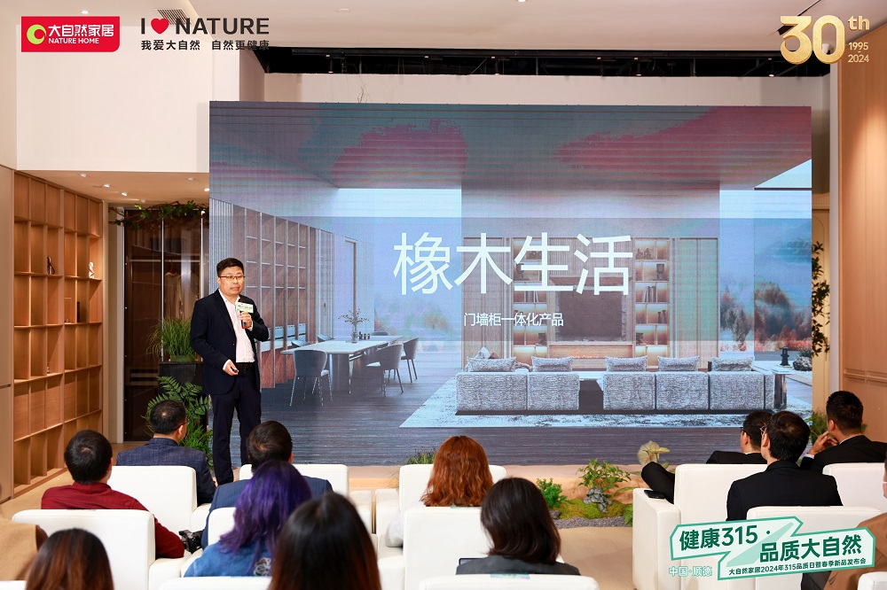 (大自然家居集團(tuán)產(chǎn)品研發(fā)中心總監(jiān)申曉亮發(fā)布2024新品“橡木生活”系列)