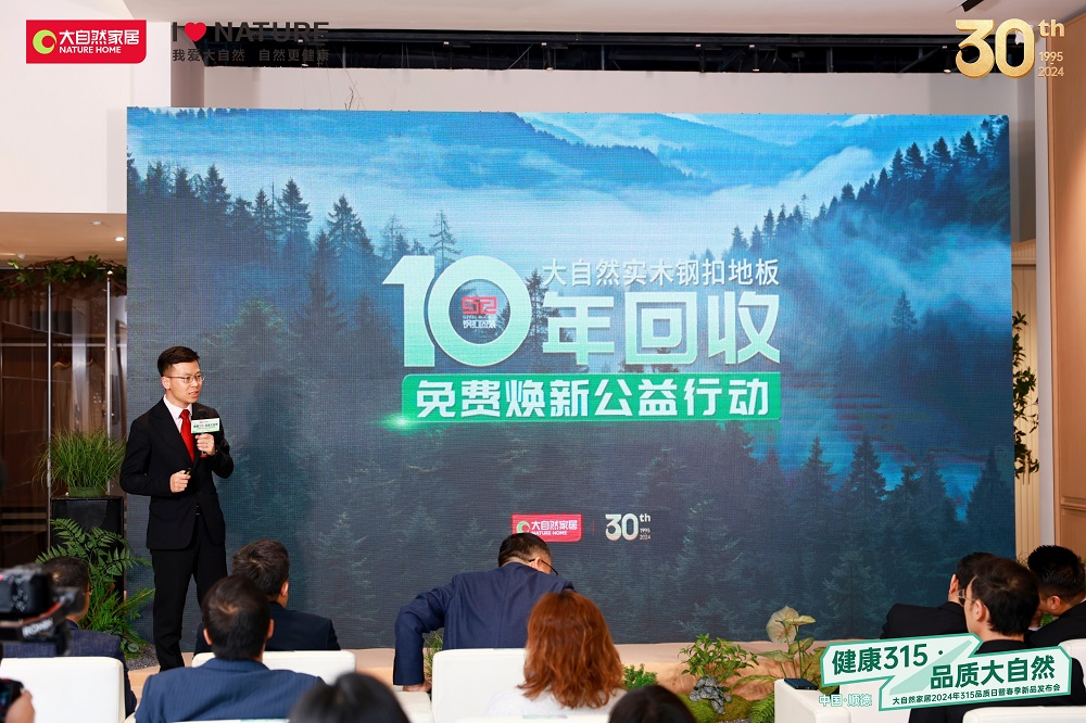 發(fā)布會上,大自然家居宣布推出“大自然實木鋼扣地板十年回收免費煥新”公益活動,旨在倡導(dǎo)綠色環(huán)保生活理念,并為消費者提供更加貼心的售后服務(wù)。
