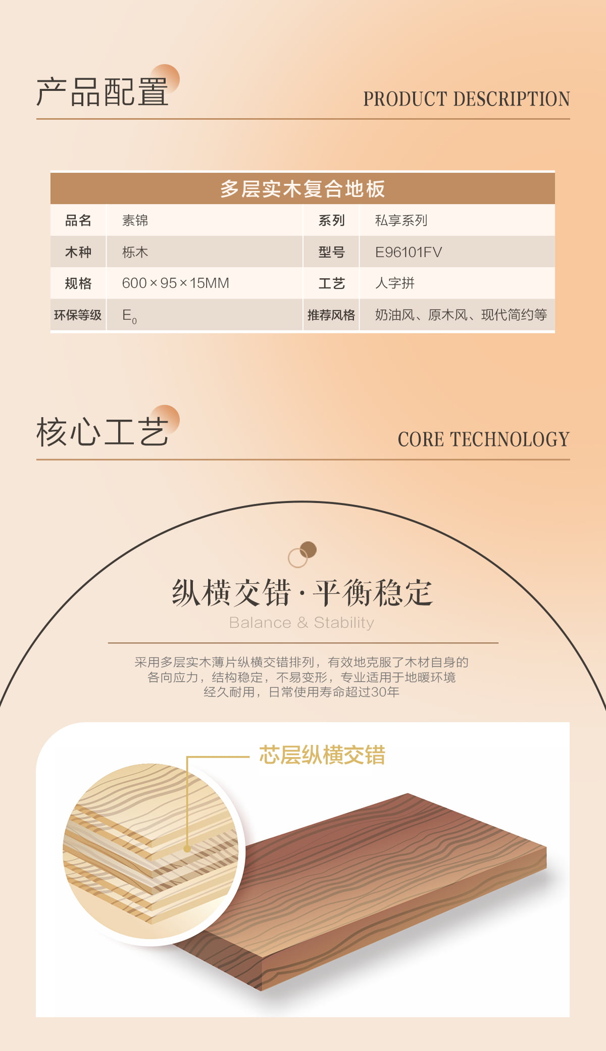 | 獨特工藝 | 人字拼 |
