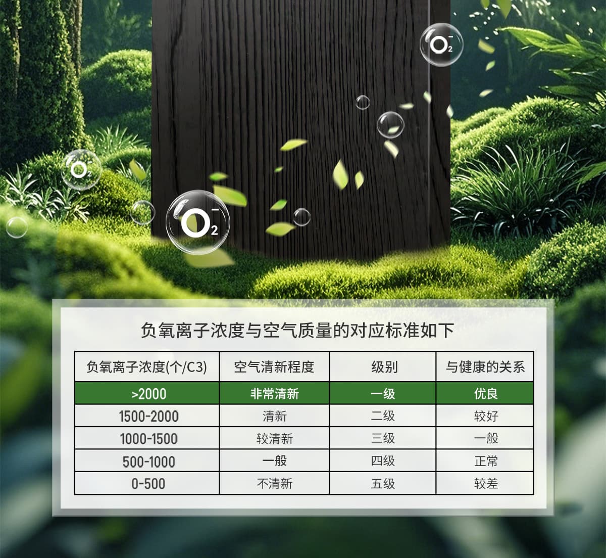 | 誘發(fā)空氣負(fù)離子量 | 比基礎(chǔ)環(huán)境提高10倍+ |