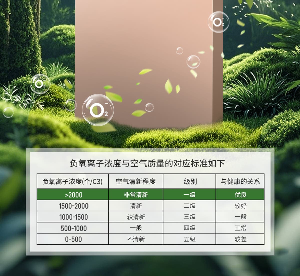 | 誘發(fā)空氣負離子量 | 比基礎環(huán)境提高10倍+ |